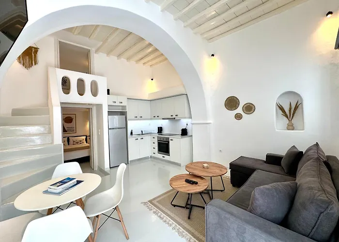 Se quiser ficar no centro de Mykonos Town, o Entropia Loft Myconian Apartment Mykonos Town de 64 m² é uma escolha perfeita, localizado a 12 minutos a pé da Praça Fabrika. Durante a sua estadia, pode alugar carros para explorar os arredores.